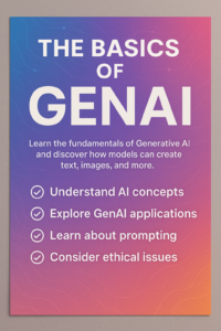 Throughout the course, learners will explore how GenAI models understand prompts, generate outputs, and continuously improve through feedback. Hands-on examples, demonstrations, and guided exercises will help participants gain practical familiarity with GenAI tools and workflows. By the end of this course, learners will have a strong conceptual grounding in GenAI, empowering them to use AI responsibly, creatively, and effectively in both academic and professional settings.